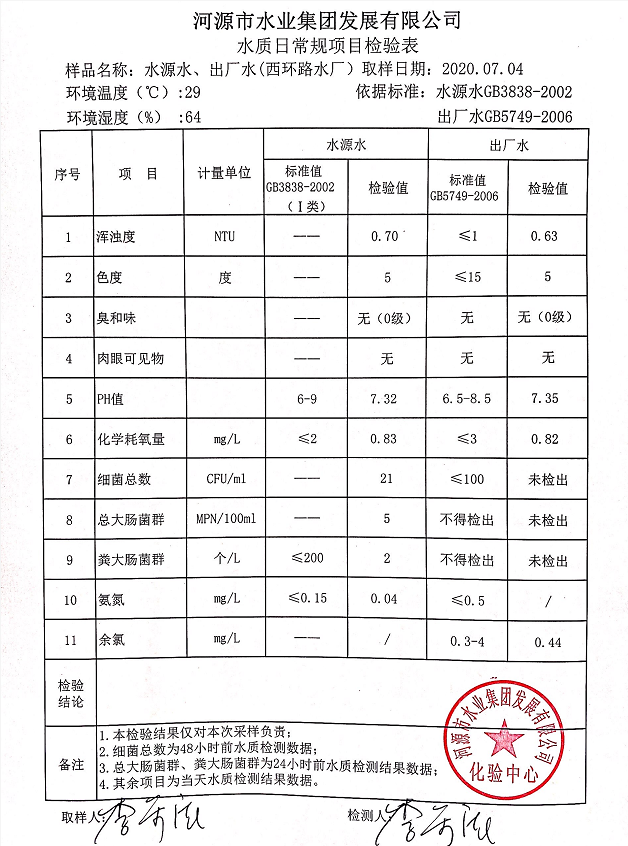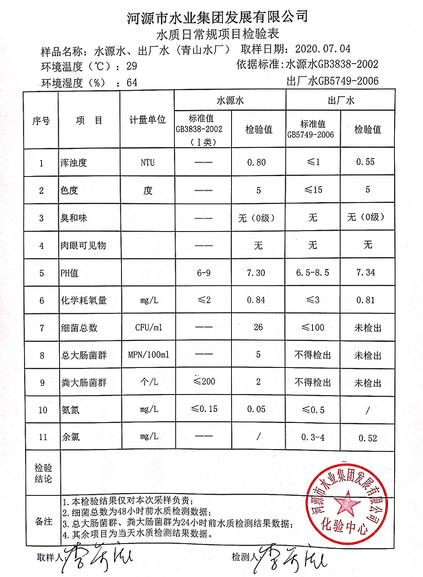2020年7月4日水質(zhì)檢驗報告