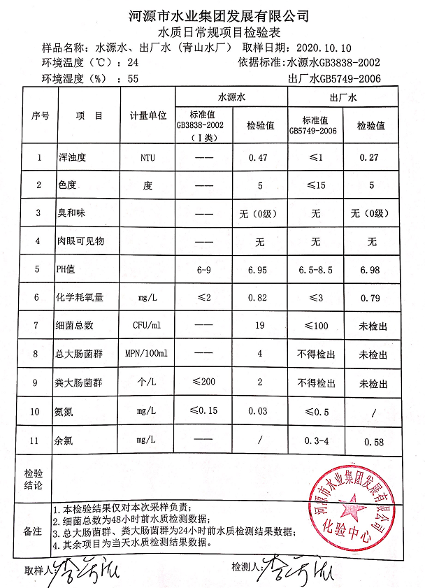 2020年10月10日水質(zhì)檢驗報告
