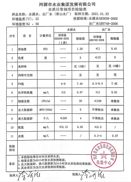2021年1月23日水質(zhì)檢驗報告