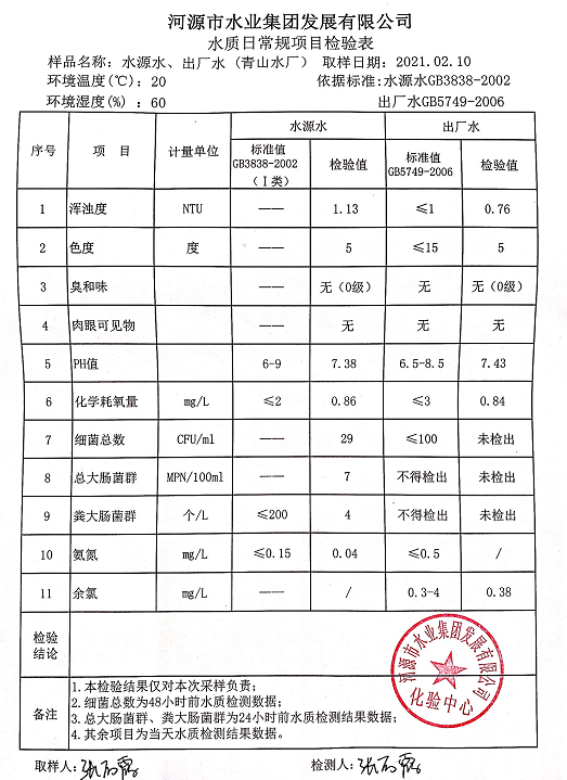 2021年2月10日水質(zhì)檢驗報告