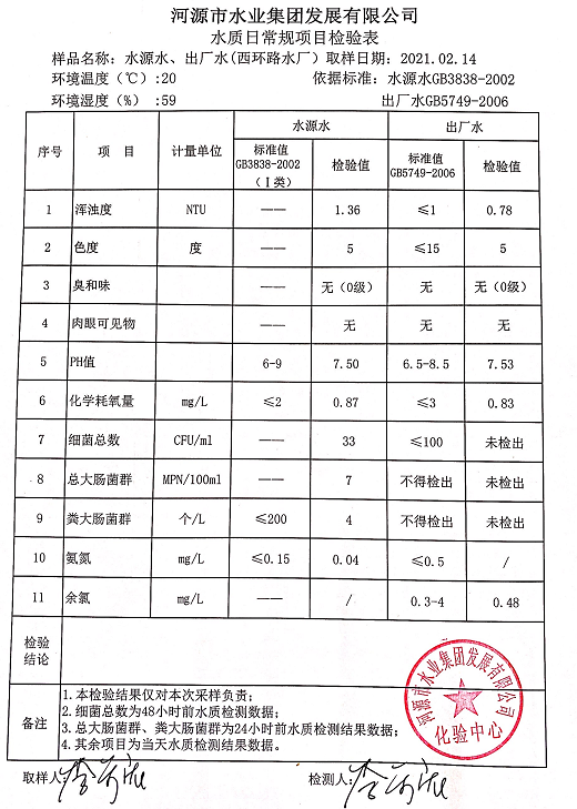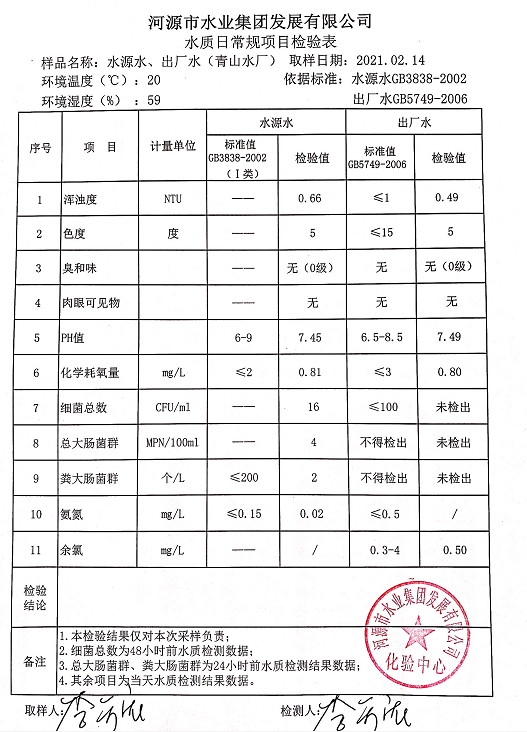 2021年2月14日水質(zhì)檢驗報告