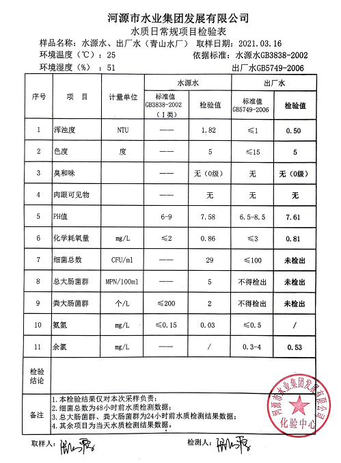 2021年3月16日水質(zhì)檢驗報告