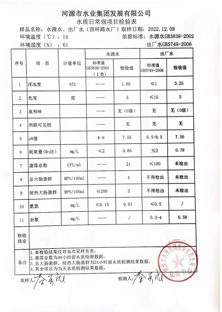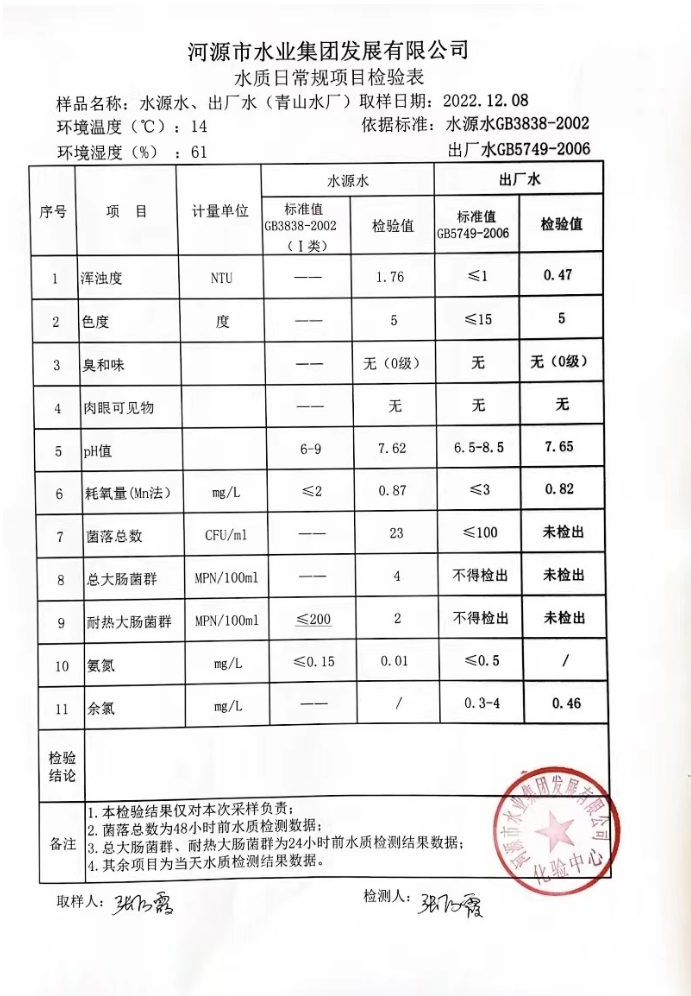 2022年12月8日水質(zhì)檢驗報告