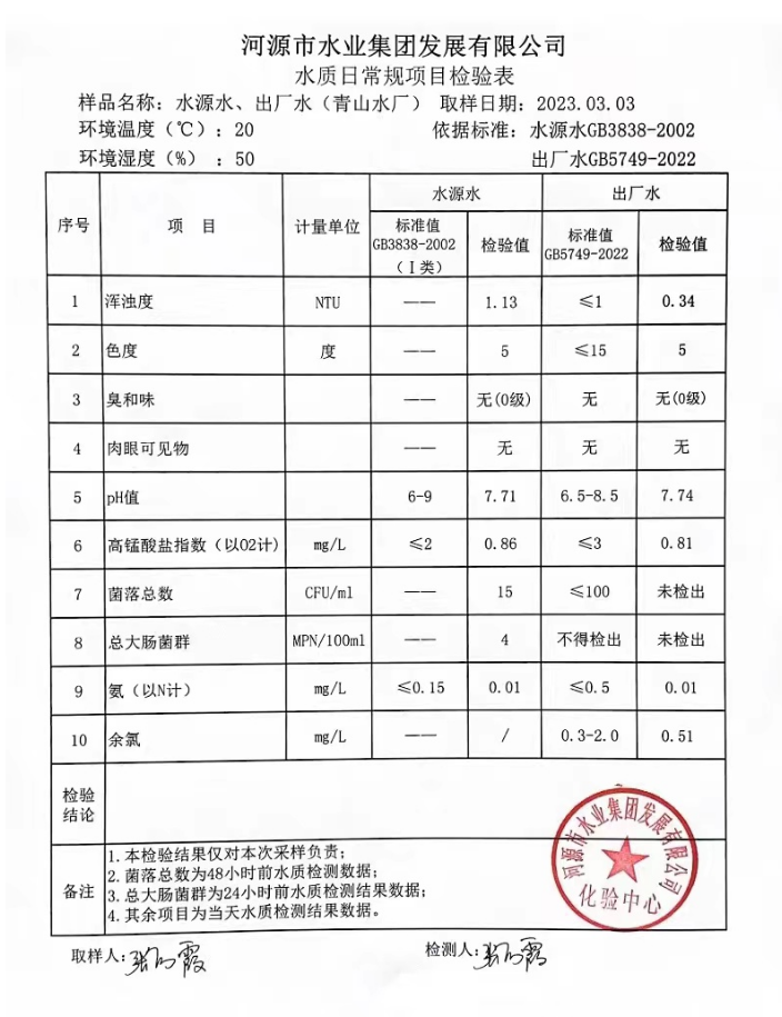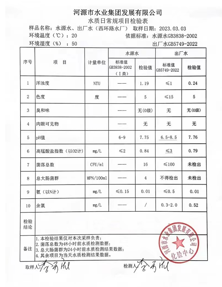 2023年3月3日水質(zhì)檢驗報告