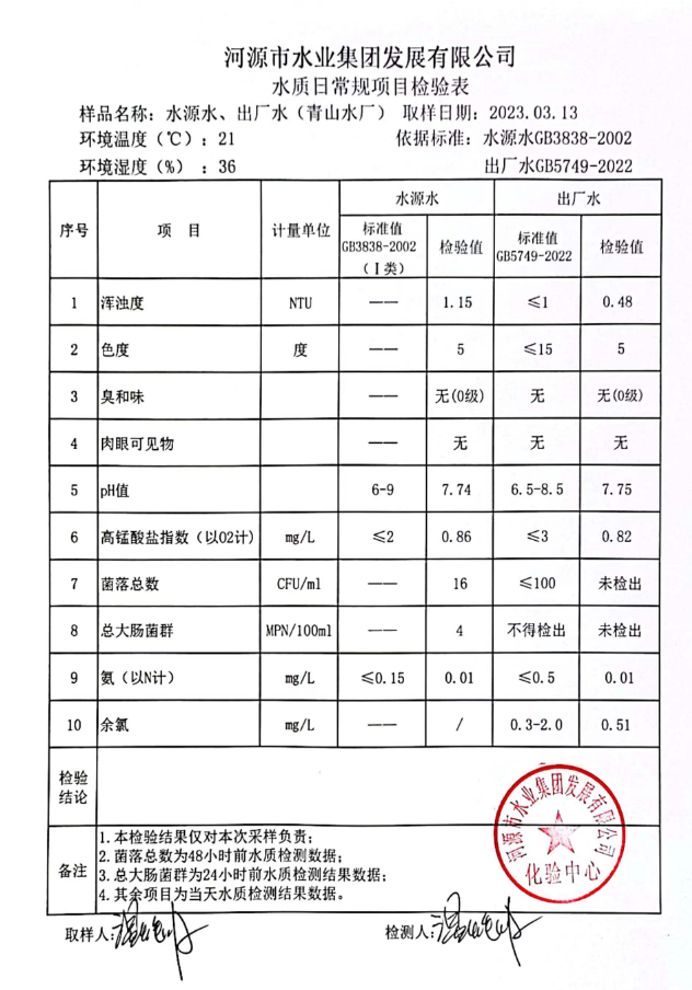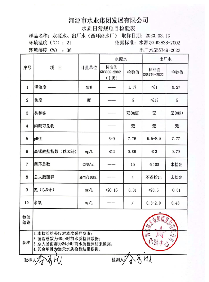 2023年3月13日水質(zhì)檢驗報告