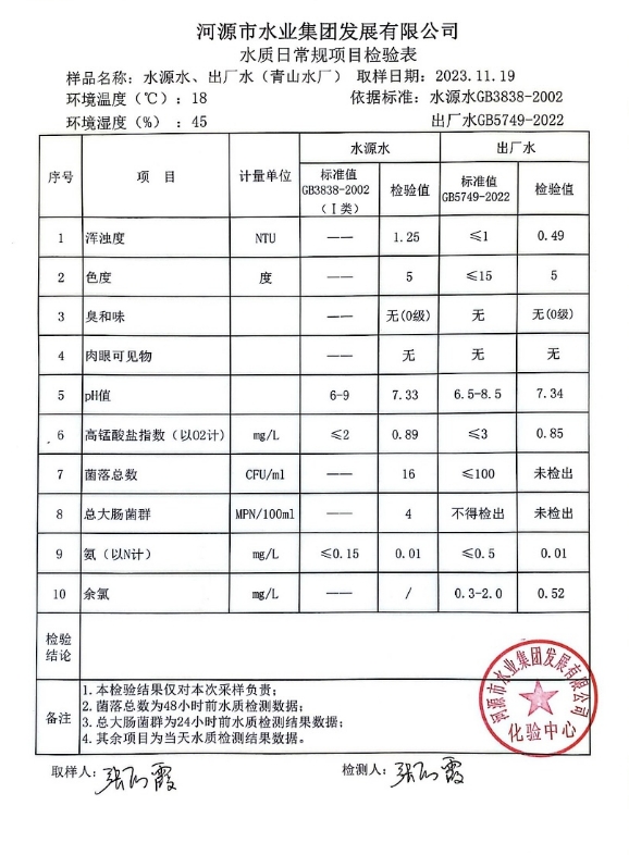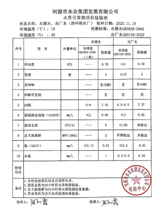 2023年11月19日水質(zhì)檢驗報告 ???