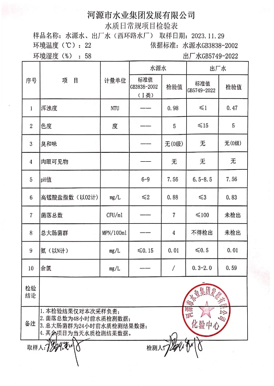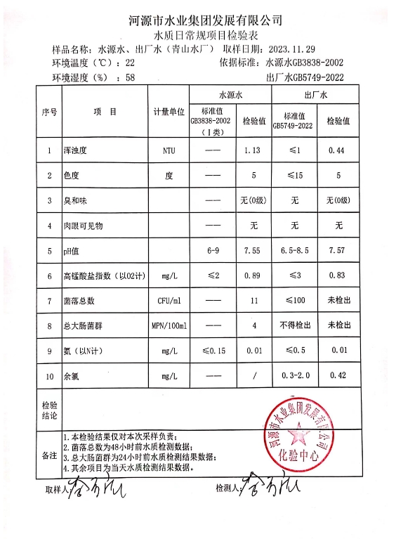 2023年11月29日水質(zhì)檢驗報告 ???