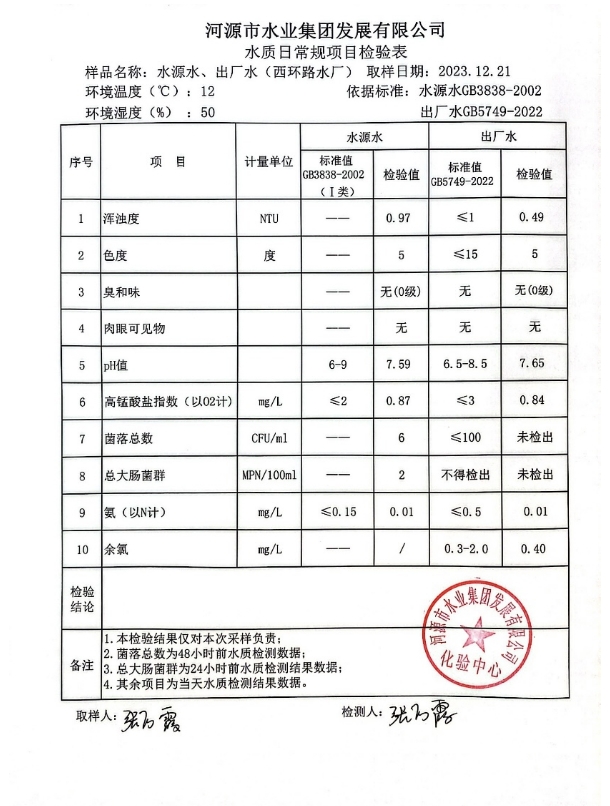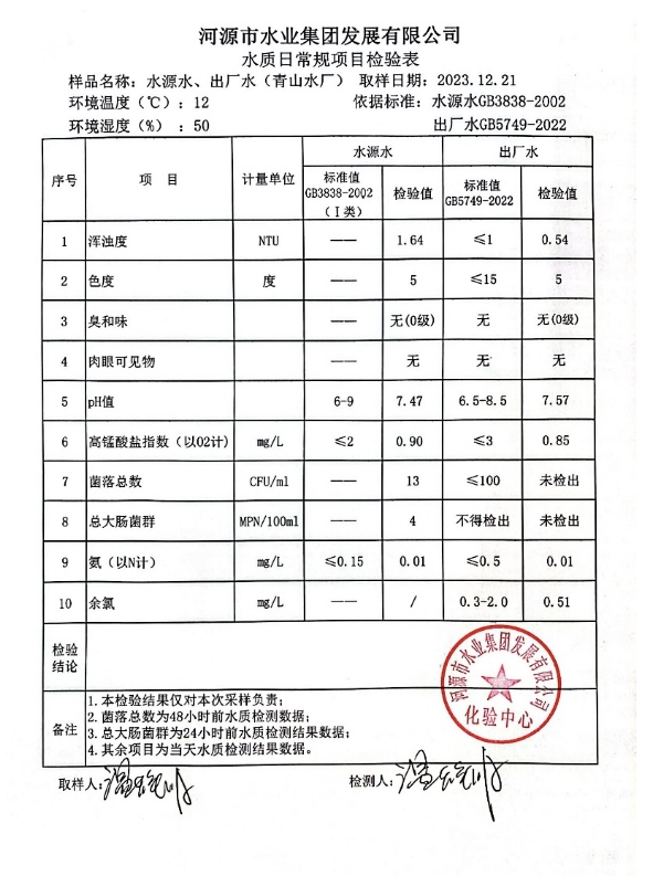 2023年12月21日水質(zhì)檢驗報告 ???