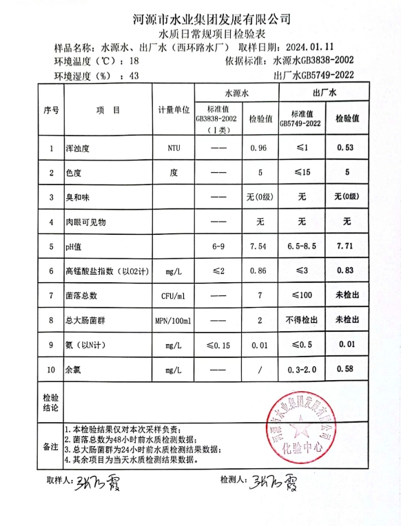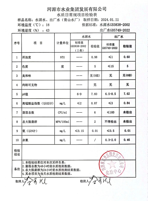 2024年1月11日水質(zhì)檢驗報告 ???