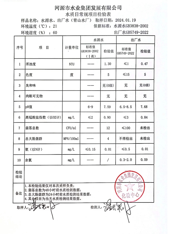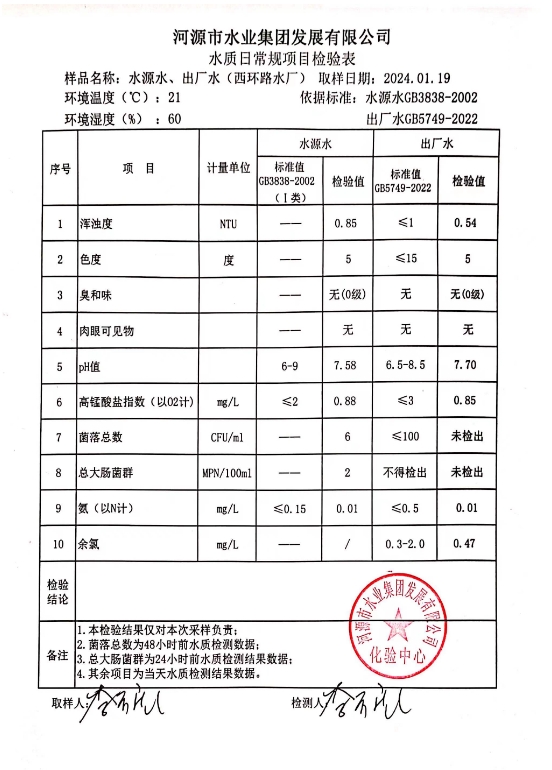 2024年1月19日水質(zhì)檢驗報告 ???