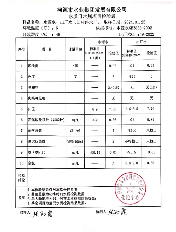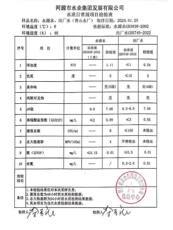 2024年1月25日水質(zhì)檢驗報告 ???