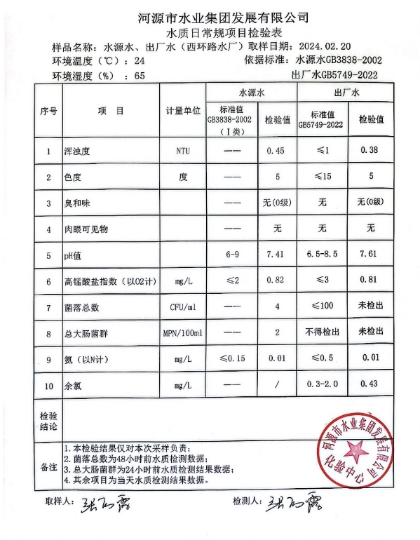 2024年2月20日水質(zhì)檢驗報告 ???