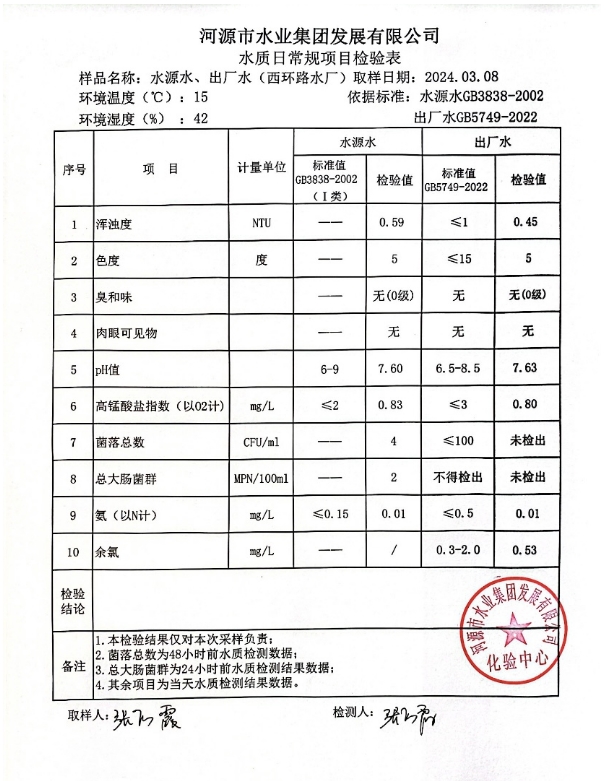 2024年3月8日水質(zhì)檢驗報告 ???