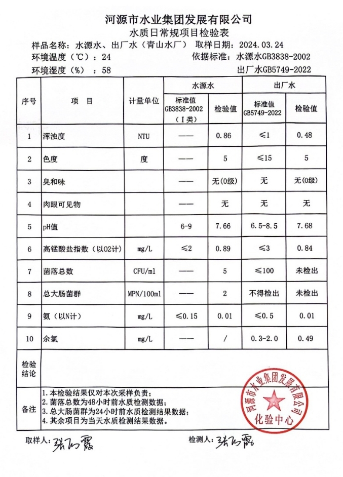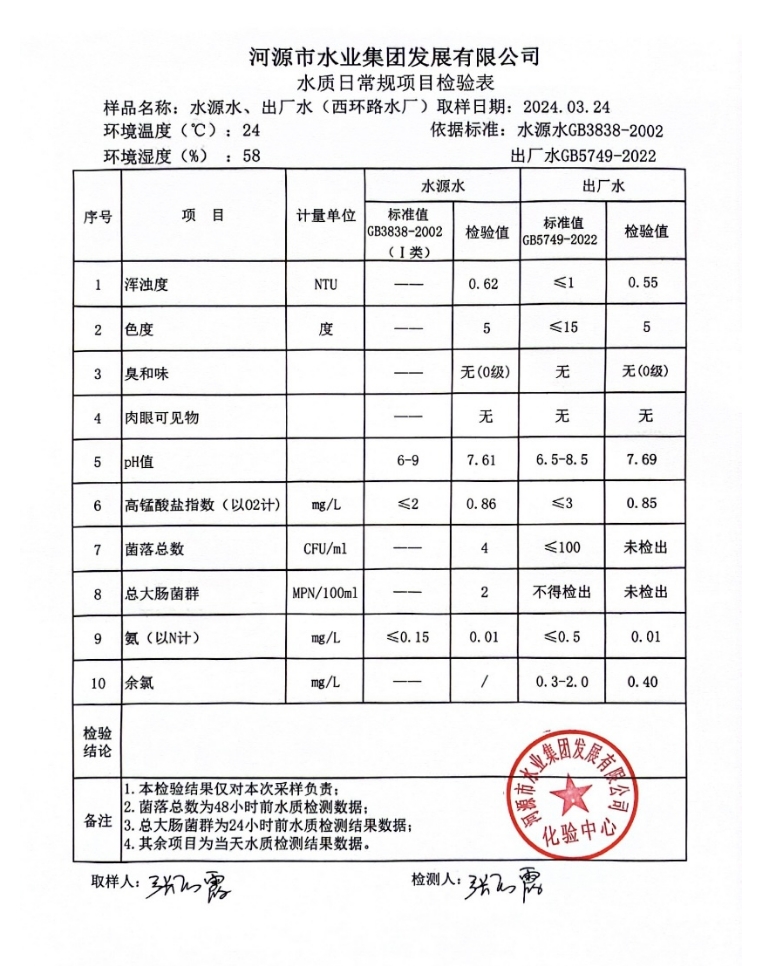 2024年3月24日水質(zhì)檢驗報告