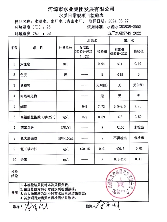 2024年3月27日水質(zhì)檢驗報告