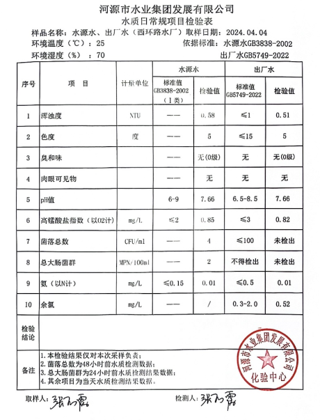 2024年4月4日水質(zhì)檢驗報告