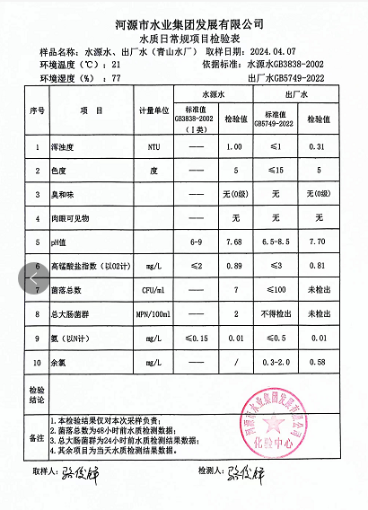 2024年4月7日水質(zhì)檢驗報告