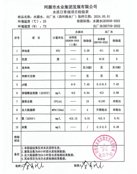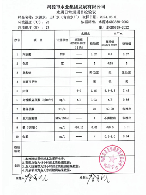2024年5月1日水質(zhì)檢驗報告 ???