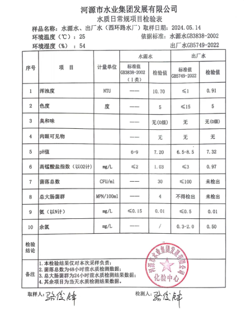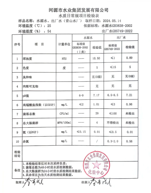 2024年5月14日水質(zhì)檢驗報告 ???