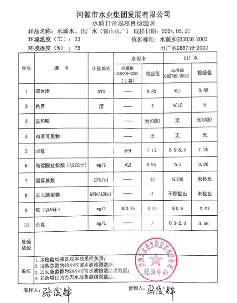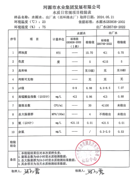 2024年5月21日水質(zhì)檢驗報告 ???