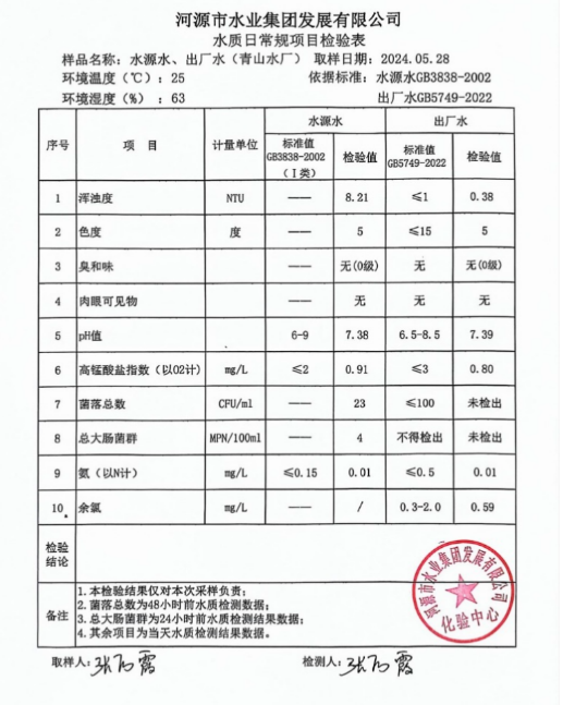 2024年5月28日水質(zhì)檢驗報告 ???
