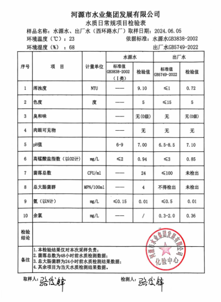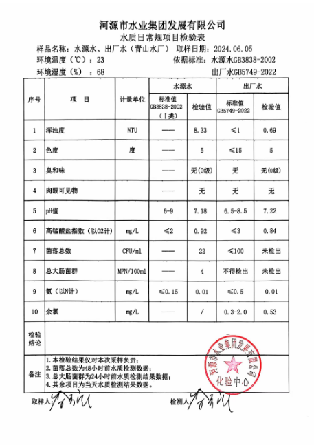 2024年6月5日水質(zhì)檢驗報告 ???