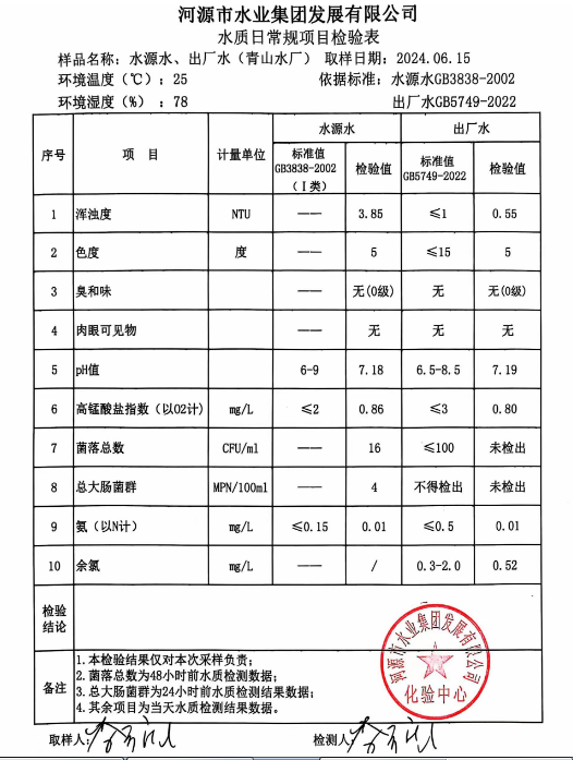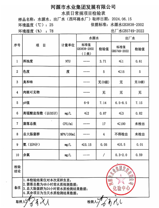 2024年6月15日水質(zhì)檢驗報告