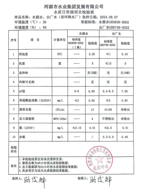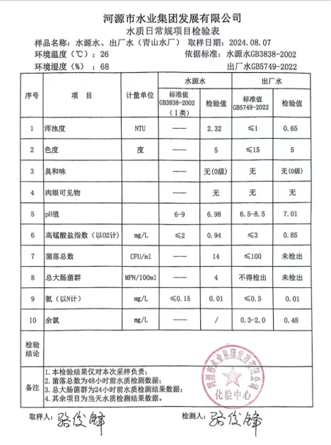 2024年8月7日水質(zhì)檢驗報告