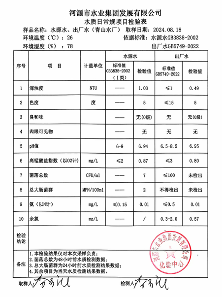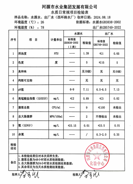 2024年8月18日水質(zhì)檢驗報告
